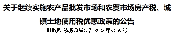 关于继续实施农产品批发市场和农贸市场房产税、城镇土地使用税优